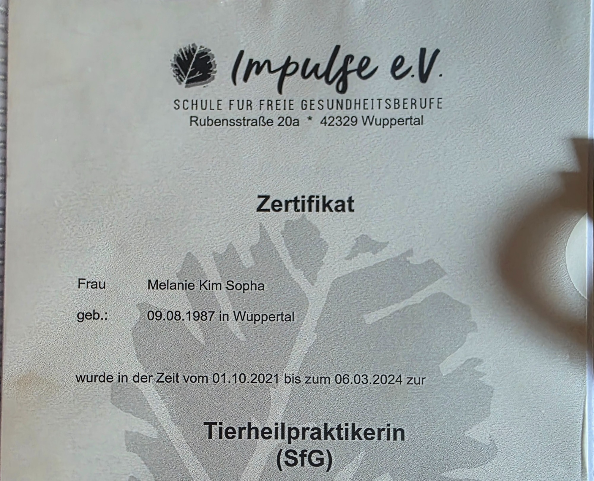 Fernstudium bei Impulse e.V zur Tierheilpraktikerin (zertifizierter Abschluss)